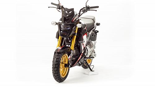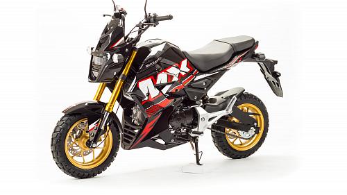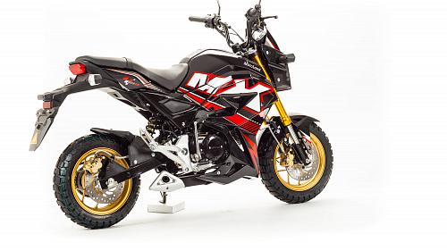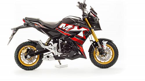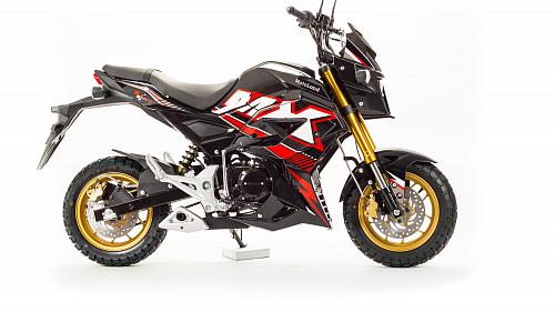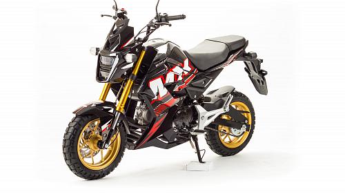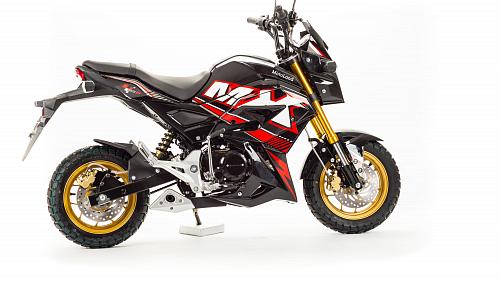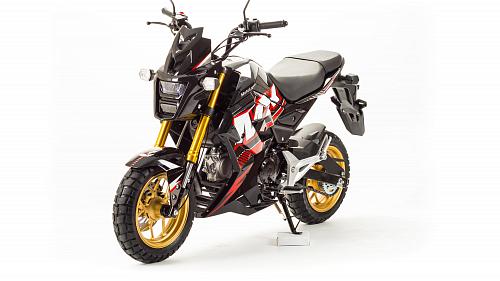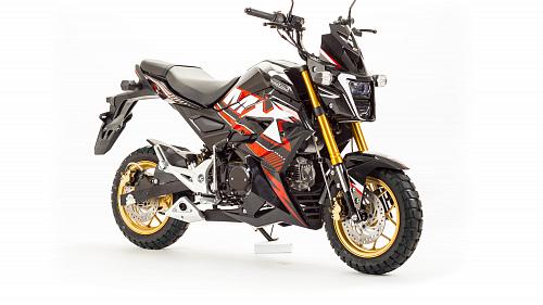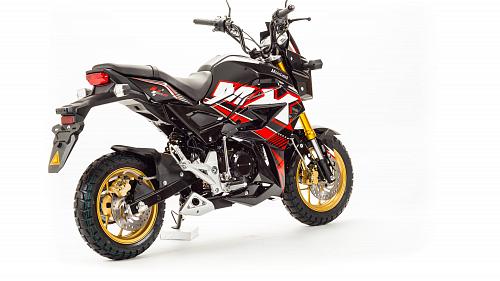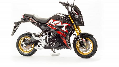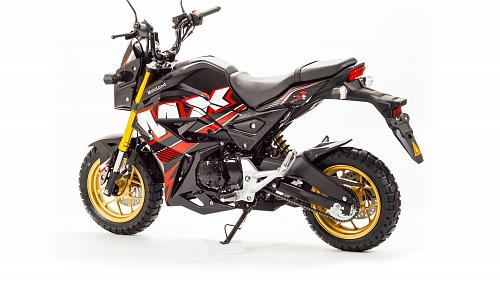 Очень компактный и удобный мотоцикл, легко помещается в легковой автомобиль. Оснащен двигателем 125 сантиметров кубических, механической 4-х скоростной коробкой передач.
