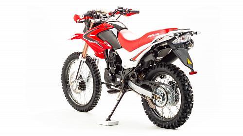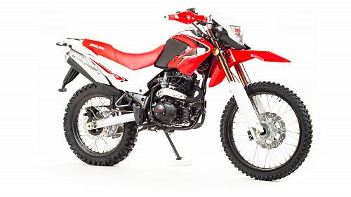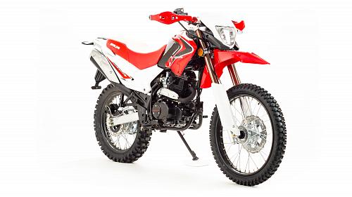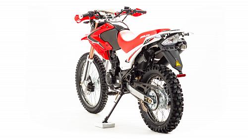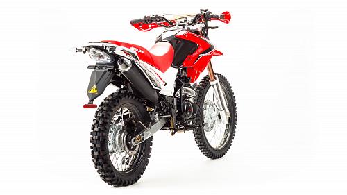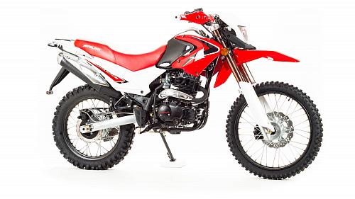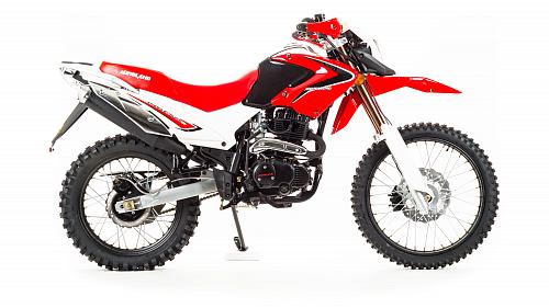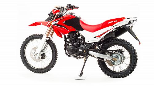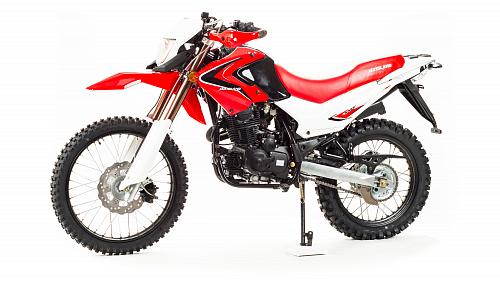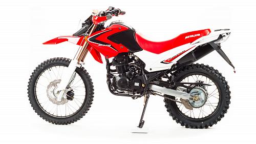 Мотоцикл Motoland Enduro250 TD250 Dоснащен 250-кубовым 4-тактным двигателем 172 модели с воздушным охлаждением. Мощность мотора составляет 16 лошадиных сил, что позволяет без проблем ездить по пересеченной местности, перевозить груз или пассажира (для второго седока предусмотрены отдельные подножки). Для переключения передач используется надежная механическая коробка передач. Транспорт собран на базе стандартной сварной рамы из труб, прогрессия в конструкции не предусмотрена. В целом, характеристикиMotoland 250 Enduroпозволяют разгоняться на хорошей дороге до скорости в 120 км/ч. Спереди и сзади на мотоцикле Enduro Motoland установлены дисковые тормоза. Размеры колес составляют 18 и 21 дюйм, резина в комплекте идет шипованная, но достаточно удобная даже для езды по трассе. Шаг цепи – 520.