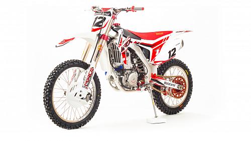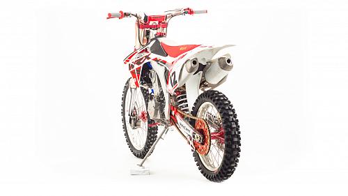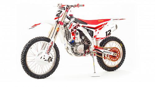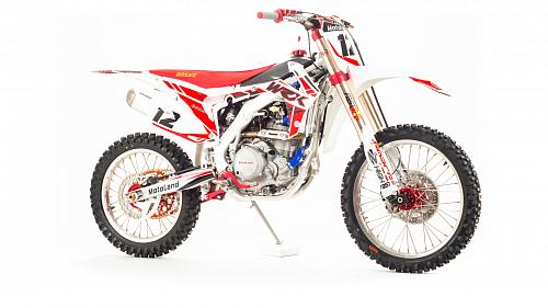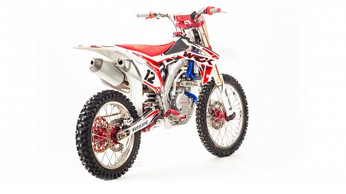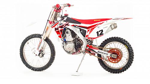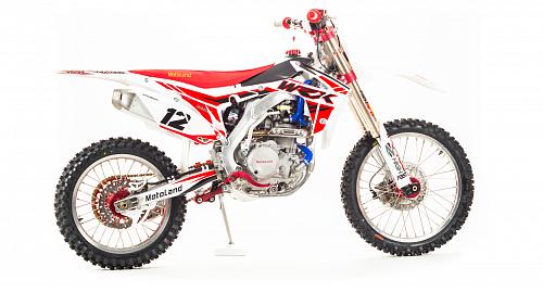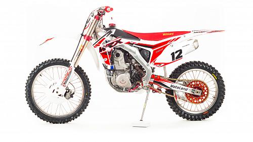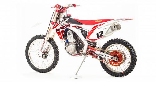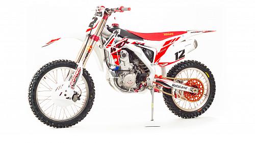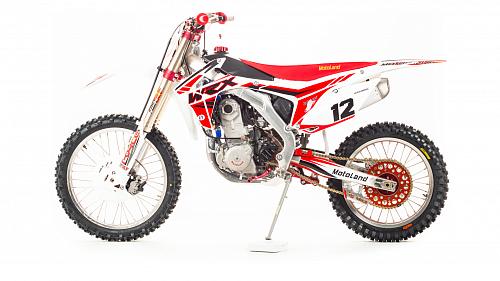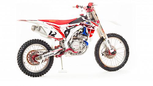 Кроссовый Мотоцикл Motoland WRX450- одна из топовых моделей линейки Motoland, на нем установлен 450-ти кубов мотор с водяным охлаждение, подвеска бренда FAST ACE, алюминиевые обода и маятник, траверсы из CNC металла и многие другие улучшения узлов мотоцикла.