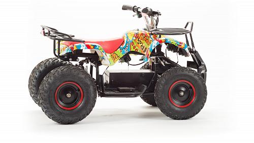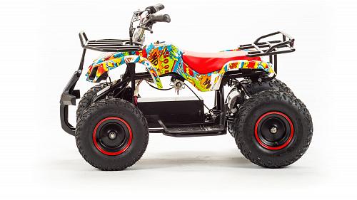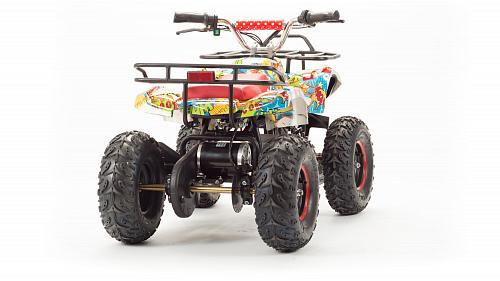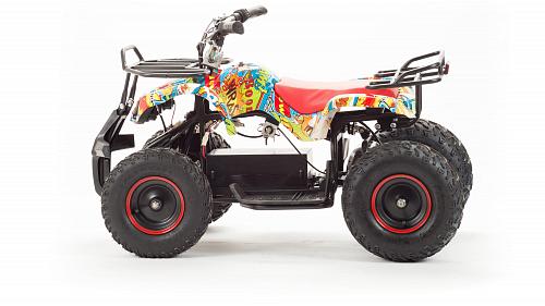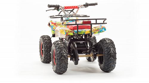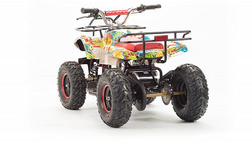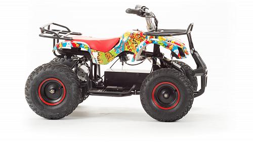 Motoland E005-ATV- это сильный и мощный детский мотовездеход, который имеет красивый дизайн и отличные характеристики. Данная техник оборудована электродвигателем 1000 W, который способен разогнать до 25 км/ч. Он оснащен дисковыми тормозами и цепным приводом, что гарантирует безопасность и комфортность передвижения.