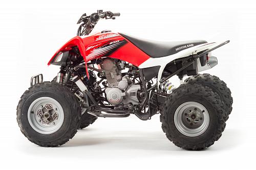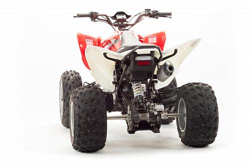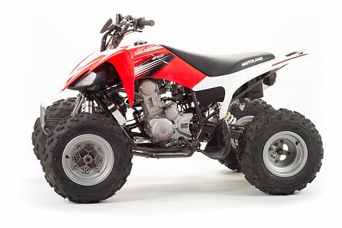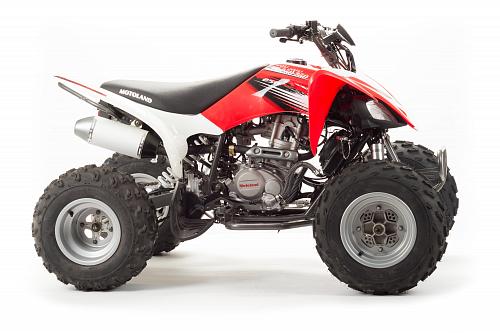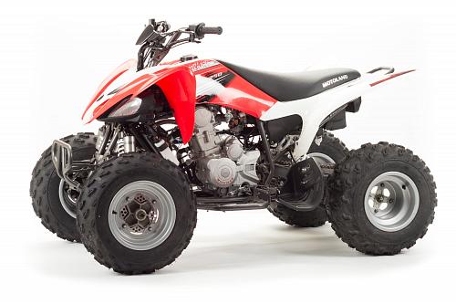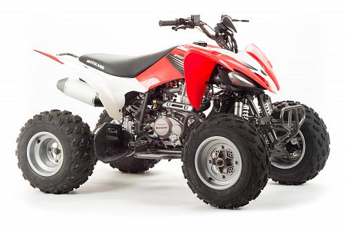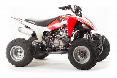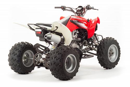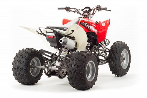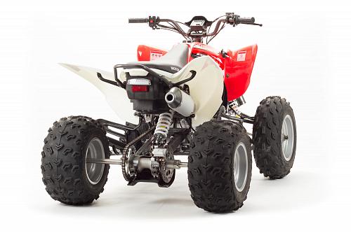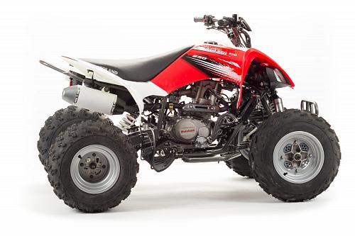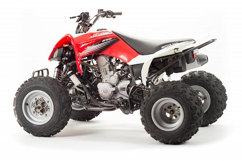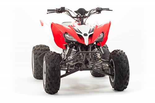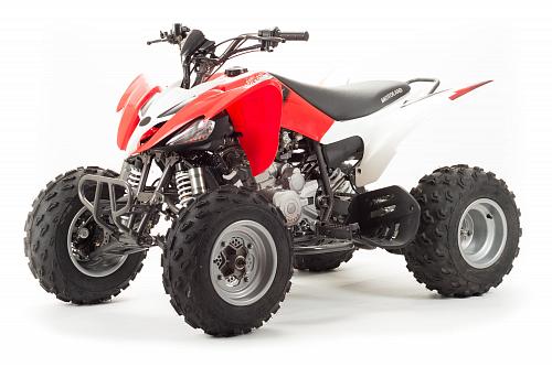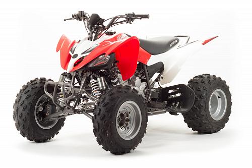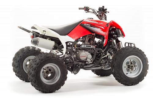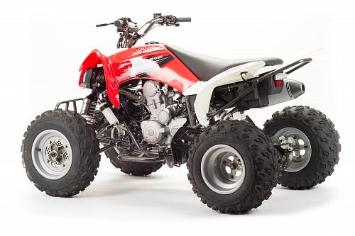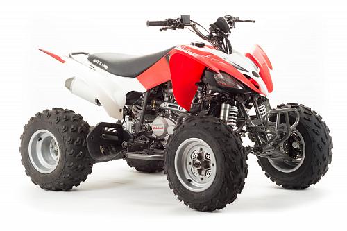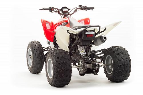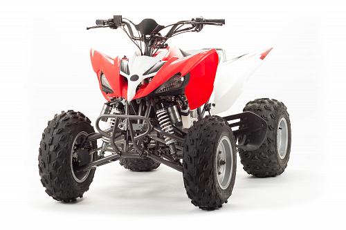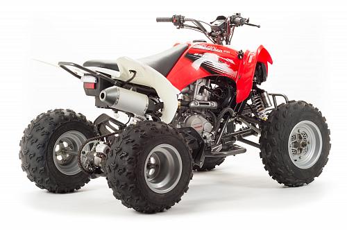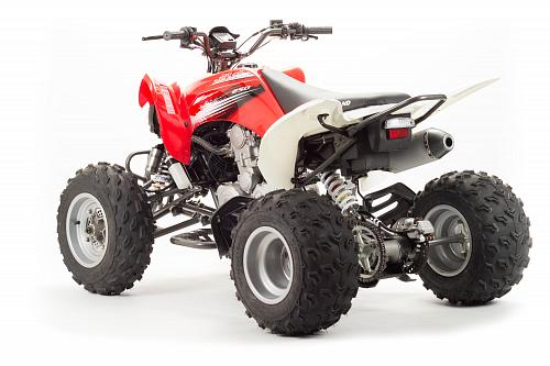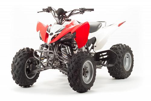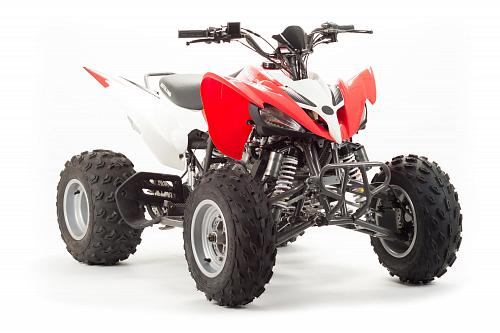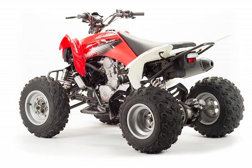 Спортивный квадроцикл оснащен оборотистым 2-х клапанным двигателем с водяным охлаждением. Аналог его модели взят со снегоболотохода Yamaha (Ямаха) Raptor (Раптор).