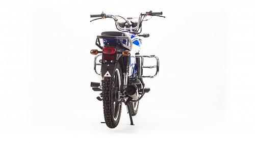 Мотолэнд Альфа оснащается колесами диаметром 17 дюймов с литыми дисками и внедорожной резиной. Благодаря наличию двух центральных амортизаторов мопед можно нагружать (для этого предусмотрен багажник) – он легко выдерживает вес более 120 кг. Масса самой техники составляет 80 кг. Длина модели - 1840 мм, ширина – 660 мм, высота - 1025 мм.