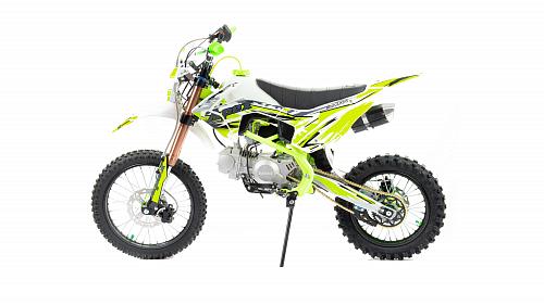 Недорогой надёжный питбайк APEX125 идеален для поездок по грунтовым дорогам и бездорожью. Хорошо чувствует себя на мягком и среднем грунте, разгоняется до 90 км/ч. Оснащён CNC траверсами, фарой, алюминиевыми ободами, весит всего 75 кг. Питбайк прост в управлении и не требует специального ухода, подойдёт как новичкам, так и любителям мотокросса.