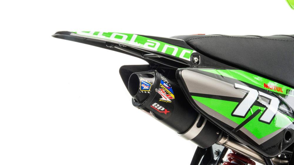 Питбайк оснащён карбюратором NIBBI PE n24 и одноцилиндровым четырёхтактным двигателем с воздушным охлаждением. Надёжный мотор мощностью 8 л. с. и объемом 125 см³ разгоняет питбайк до 90 км/ч.