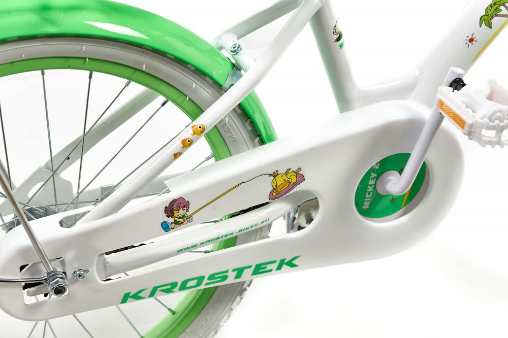 KROSTEK MICKEY 20- если маленький велосипедист только осваивает навыки езды – для большей уверенности и безопасности велосипед оснащен: закрытой защитой цепи, задним педальным тормозом и передним ручным.