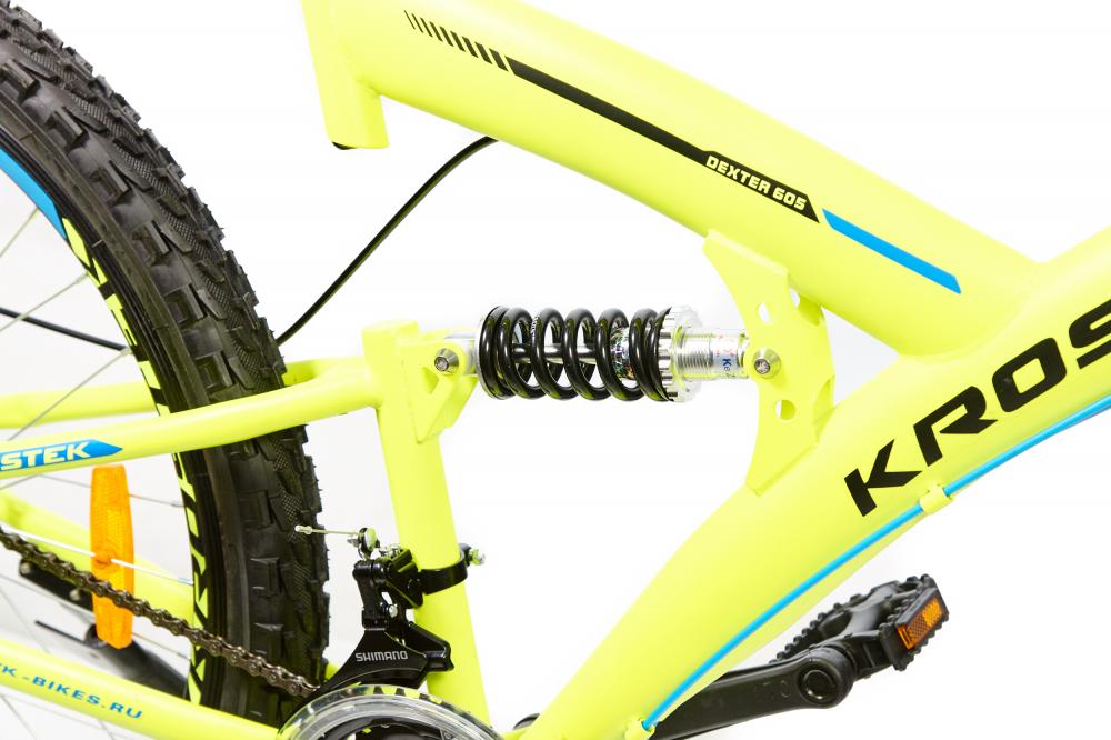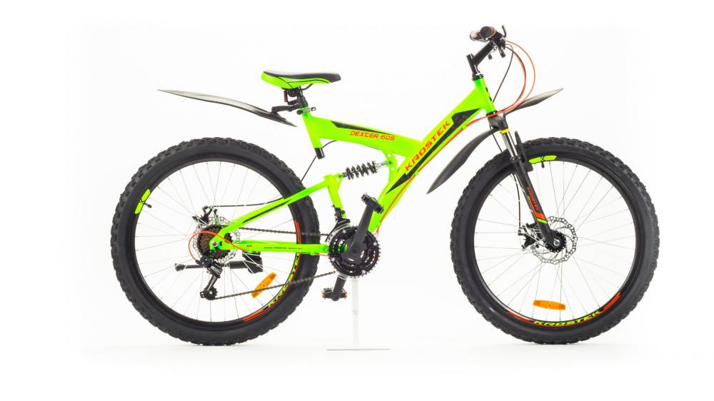 KROSTEK DEXTER 605- крепкий велосипед с задним амортизатором.Задняя подвеска позволяет смягчить самые огромные неровности на дороге. Модель укомплектована дисковыми тормозами, двойными ободами, трансмиссией Shimano.