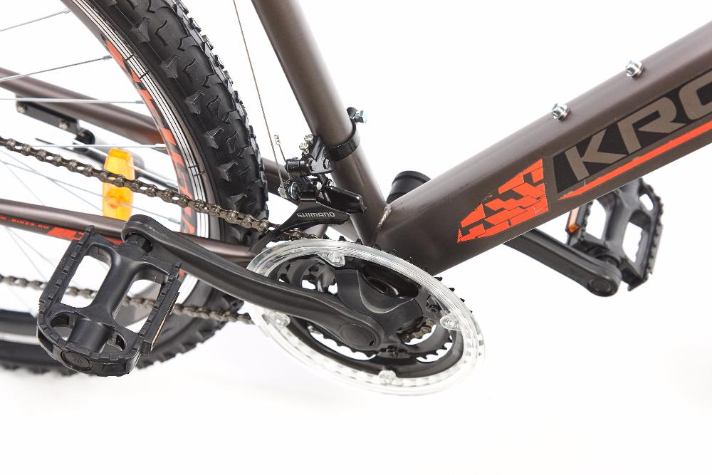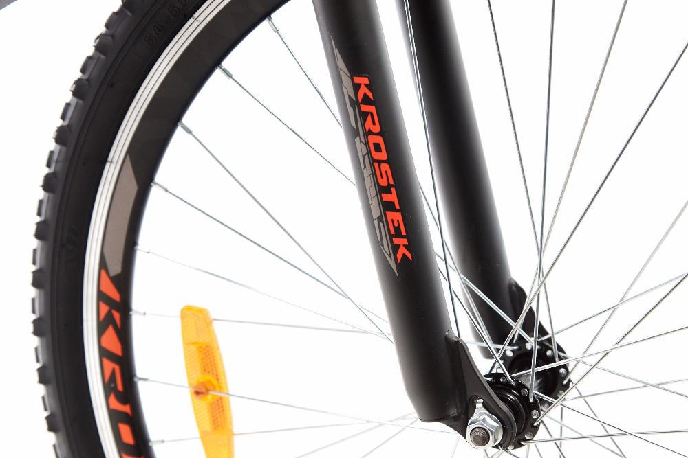 KROSTEK IMPULSE 600- горный велосипед с оборудованием начального класса Shimano, 21 скорость. Технические особенности: прочная стальная рама, амортизационная вилка MODE711B, двойные алюминиевые обода, надежные ободные тормоза. Подходит для езды по различным дорогам и пересеченной местности.