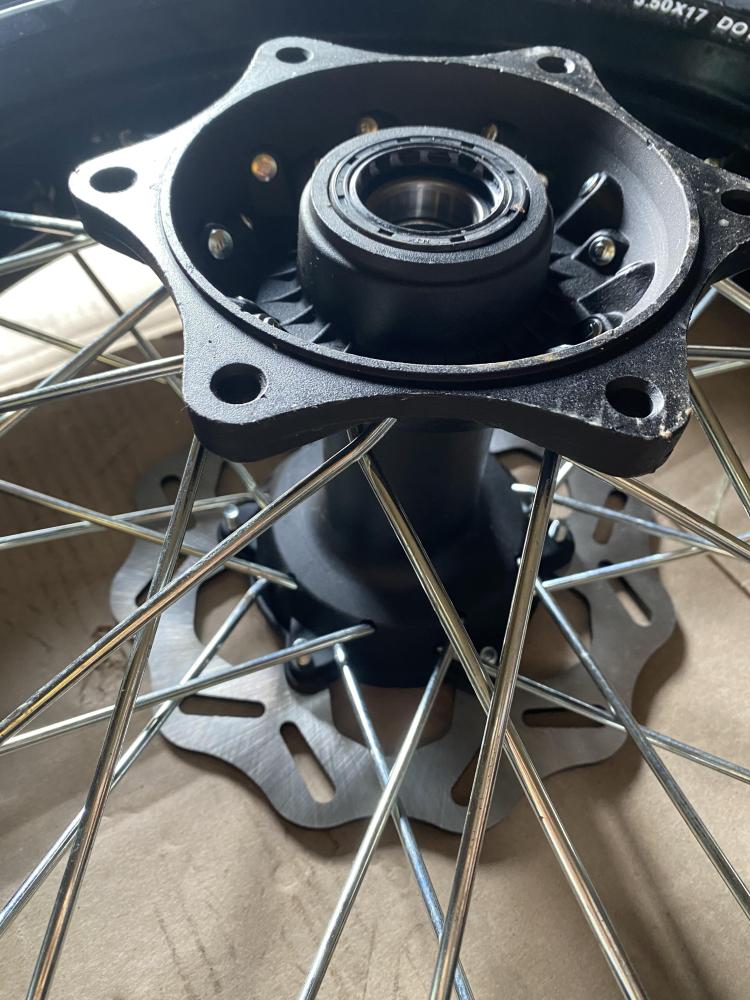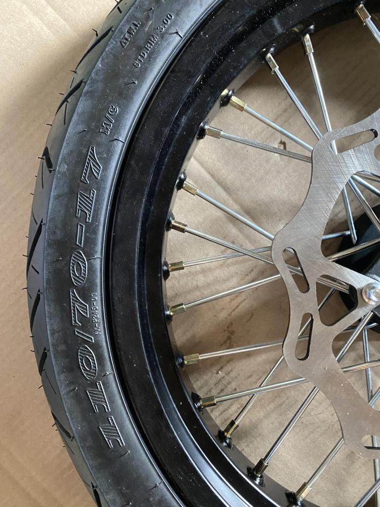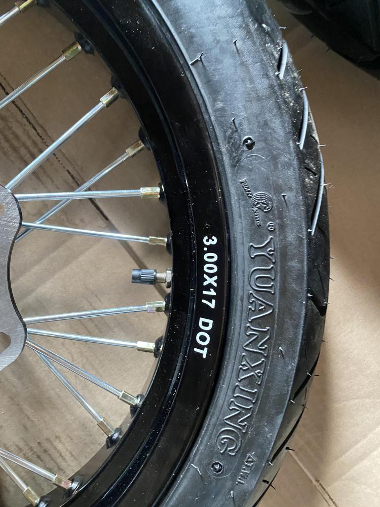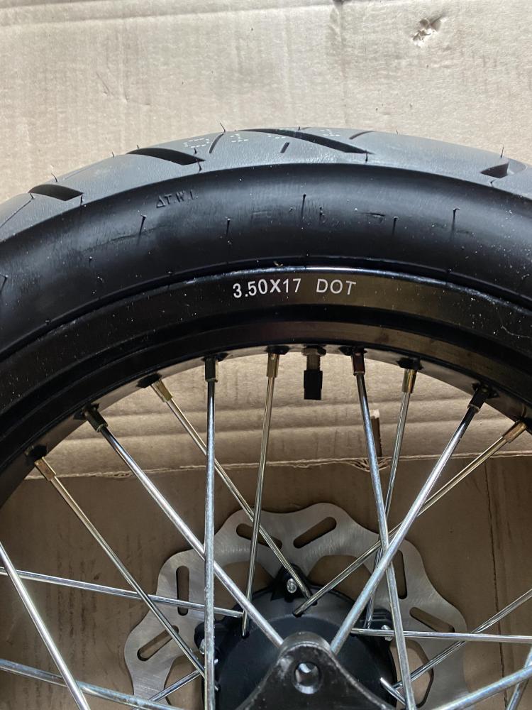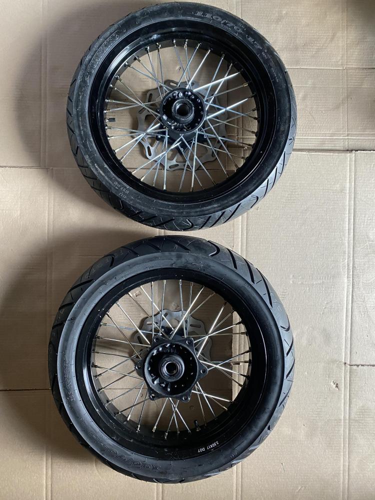 Колеса МОТАРД комплект 17/17(диски алюминий перед/зад с шиной 3 110/70-17, 3.5 130/70-17, оси 25 -30 мм, ступицы КТМ)